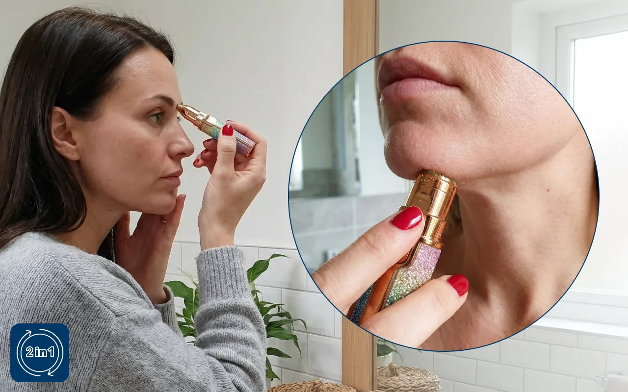 Tvarujte obočí a odstraňte chloupky z obličeje pomocí jediného šikovného nástroje. Rychle vyměňujte hlavy pro úpravu obočí nebo jiných citlivých oblastí.