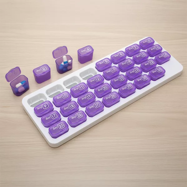 Získejte kontrolu nad denními dávkami díky jednoduchým číslovaným kapslím. Ortorex usnadňuje ukládání vitamínů a léků pro každého. Plánujte dopředu na jednatřicet dní bez zmatků a stresu. Každá kapsle uchovává vše přehledné, bezpečné a chráněné po celý měsíc.
