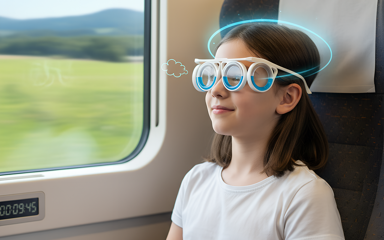 Užijte si klidnou cestu už po deseti minutách. Tyto brýle rychle zmírní nevolnost během pohybu.