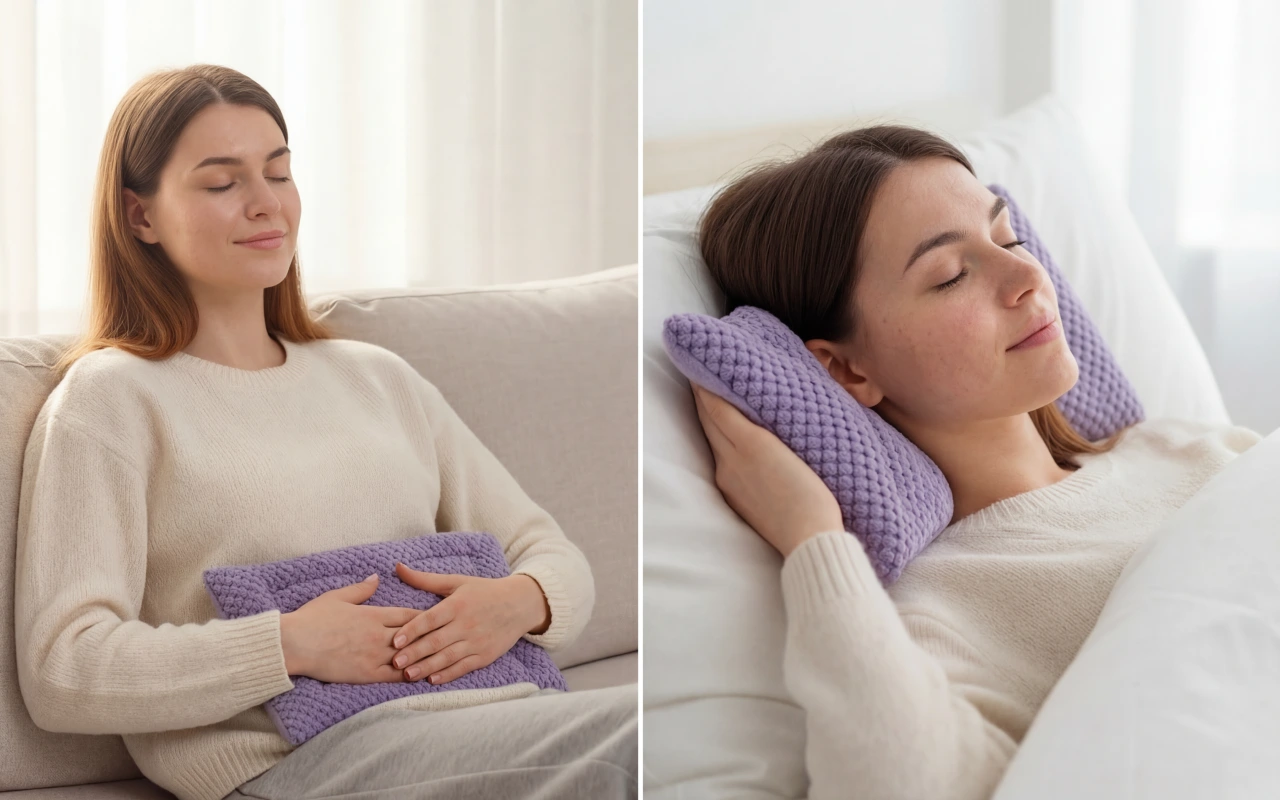 Příjemně teplý polštářek pro rychlou úlevu unaveným svalům.