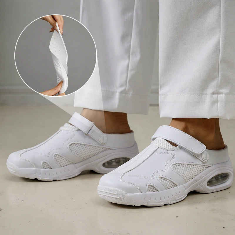 Skvělá přilnavost na mokrých podlahách, už se nebojím pádu. Celodenní nošení vůbec nezpůsobuje bolest nohou.