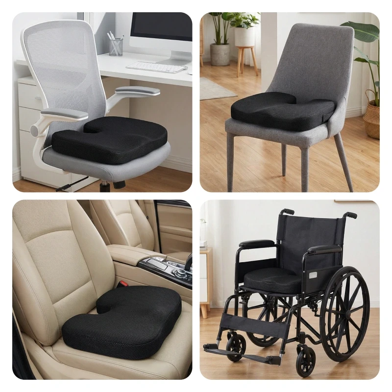Mám tenhle polštář na invalidním vozíku. Dobře větrá, kůže se nepotí a rovnoměrná opora mi pomáhá sedět déle bez té hluboké bolesti.
