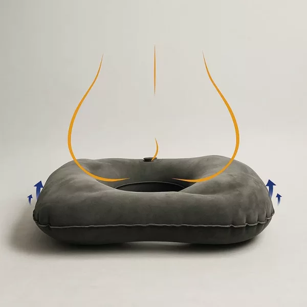 Polštář dobře drží tvar a podpírá mě i na tvrdých židlích. Snadno nafukovatelný a vyfukovatelný kdykoliv potřebuji.