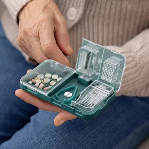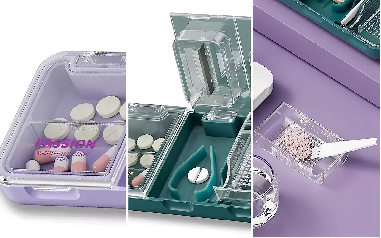 Tři klíčové funkce v jednom jednoduchém zařízení. Skladujte, dělejte a drťte tablety bez nepořádku a komplikací.