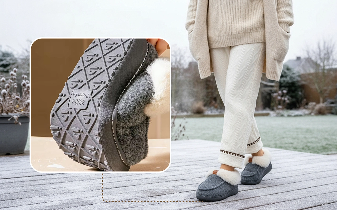 Silná plyšová podšívka obklopuje vaše nohy jemnou měkkostí. Ideální na chladná rána nebo na odpočinek doma po práci.