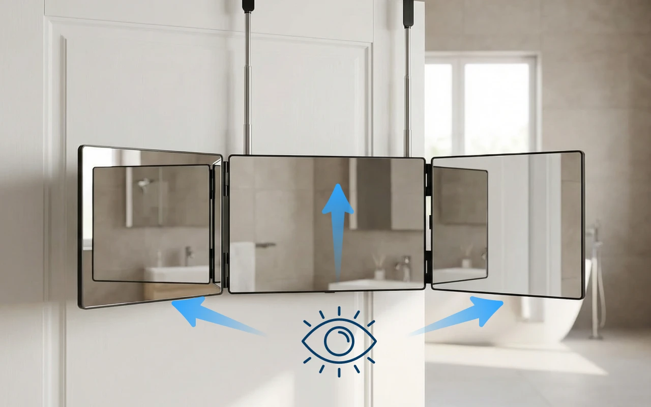Tři panely snadno odhalí těžko dostupná místa pokaždé. Žádné opomenuté části nebo nepohodlné ohýbání.