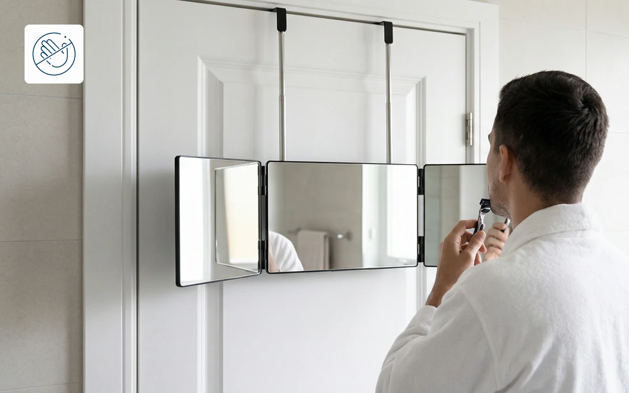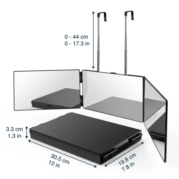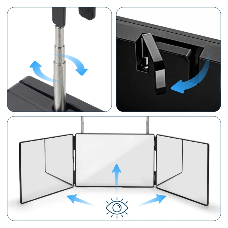 Ortorex trojitě skládací zrcadlo rychle a snadno řeší každodenní problémy s úpravou. Nastavte výšku pro plnou viditelnost při stylingu nebo holení. Složte jej naplocho do tašky nebo zásuvky na cesty. Každý den naleznete jasný odraz pro střihy vlasů, líčení nebo péči o pleť.