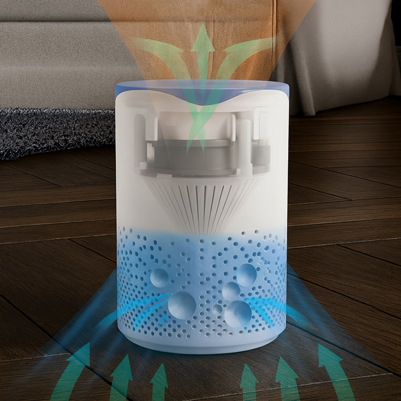 Částice prachu a pylu rychle mizí ze vzduchu. Dýchání je snazší, což podporuje klidné noci a zdravé dny.