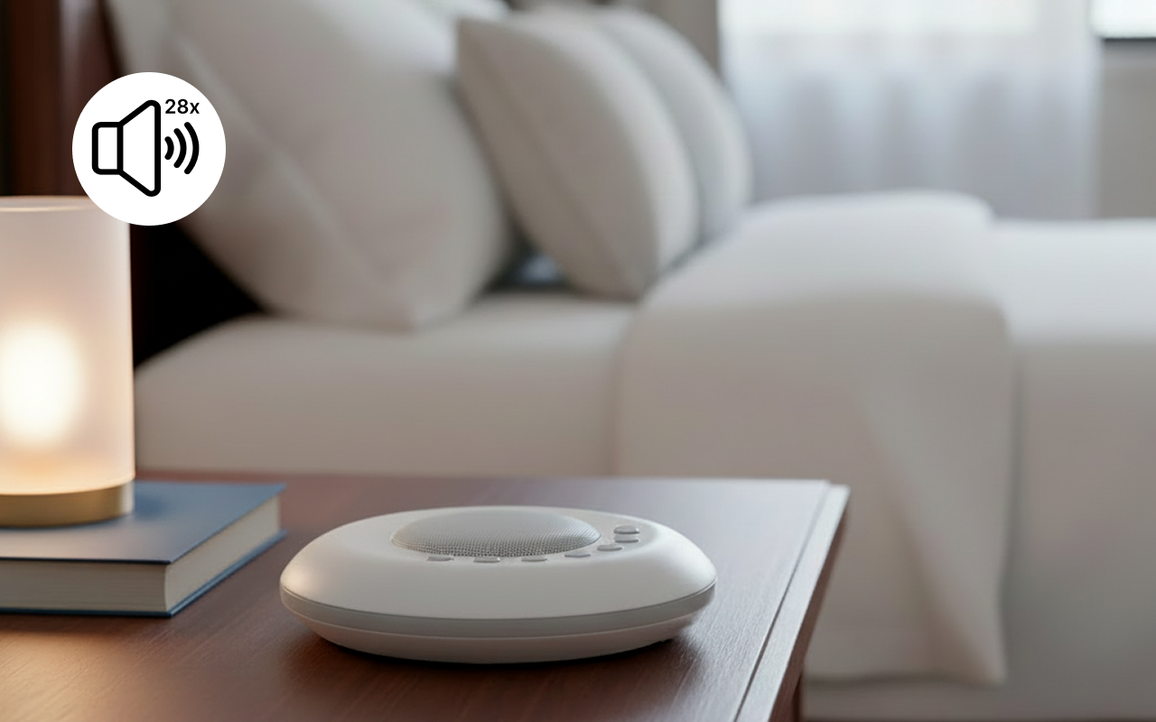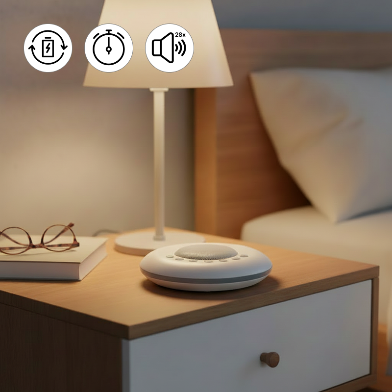 Můj manžel chrápe a já mám lehké spaní. Tenhle přístroj zvuk překryje a oba vstáváme méně protivní. Velký výběr zvuků hodně pomáhá.