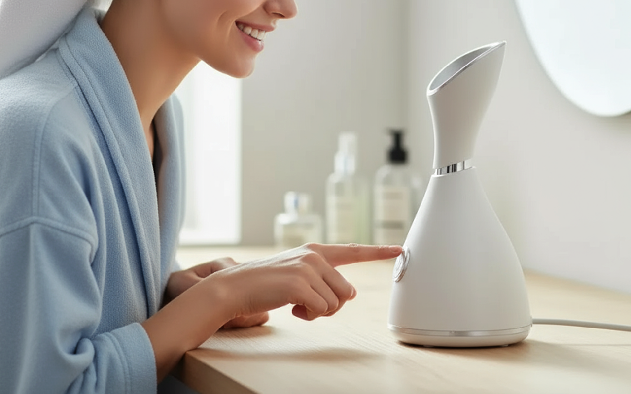 Jednoduché ovládání zpříjemní a urychlí vaši kosmetickou rutinu. Žádné složité kroky, stačí zapnout a užívat si uklidňující páru.