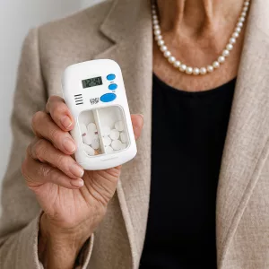 Buďte každý den v obraze s dávkovačem léků Ortorex. Jednoduché připomínky vám pomohou vzít si tablety přesně, když je to potřeba. Noste ho kamkoli díky praktické kompaktní velikosti. Přehledný displej umožňuje rychlé a bezstarostné nastavení alarmů.