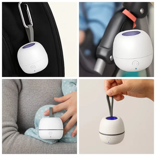 Tento malý sterilizátor mám vždy v přebalovací tašce pro případ nouze. Miluju, že nemusím hledat vodu nebo ubrousky, když jsme venku.