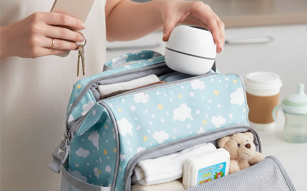 Zabere to jen pár minut a bez nepořádku. Vejdou se tam i baculatější dudlíky, které mé dítě preferuje. Už si nedokážu představit vyrazit ven bez něj.