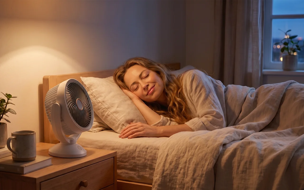Nízká hlučnost podporuje hlubší spánek během teplých večerů. Jemný proud vzduchu snižuje vydýchanost, což pomáhá mysli se rychleji zklidnit.