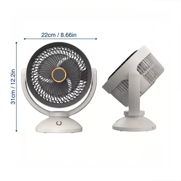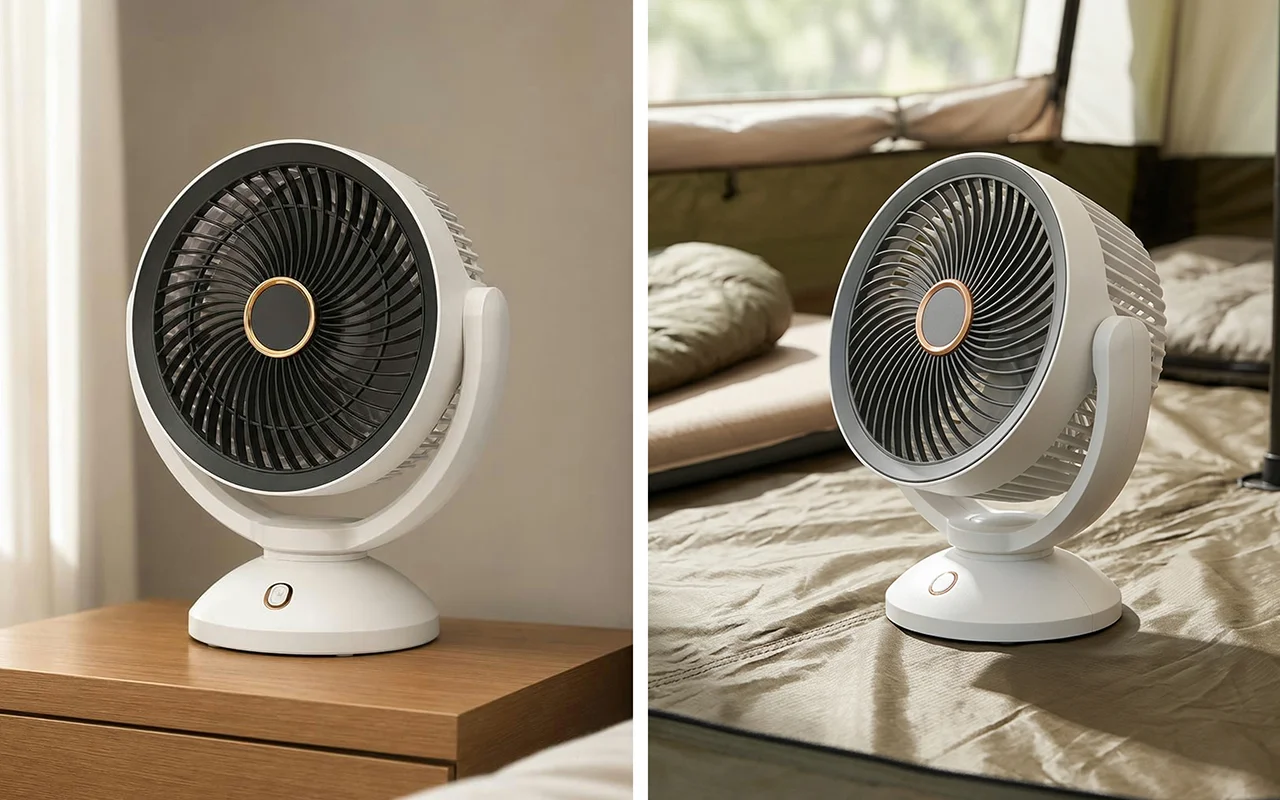 Kompaktní konstrukce se hodí na stoly, police, do stanů i tašek. Nabíjení přes USB udržuje ventilátor připravený k použití i na cestách.