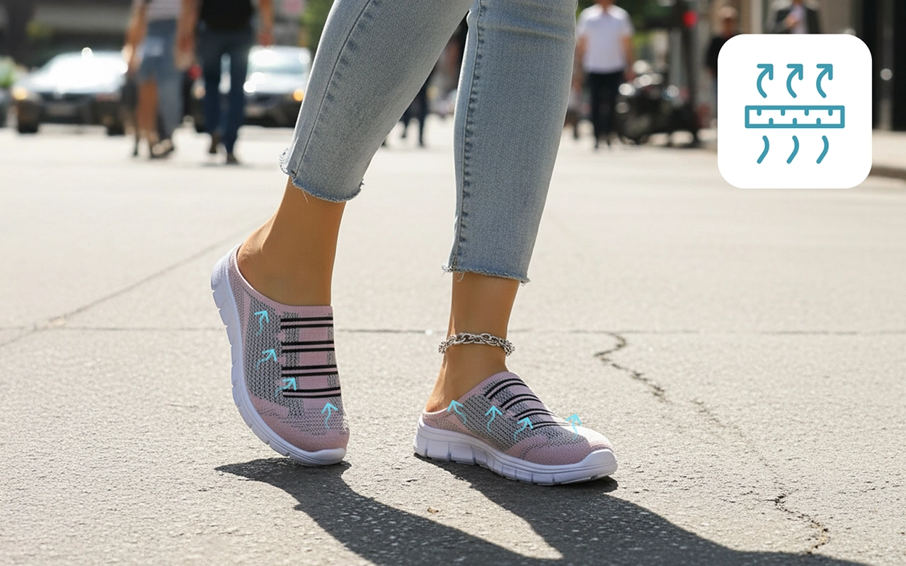 Čerstvý vzduch volně proudí, takže nohy nejsou nikdy zpocené ani horké. Síťovina umožňuje únik vlhkosti pro zdravou a šťastnou pokožku.
