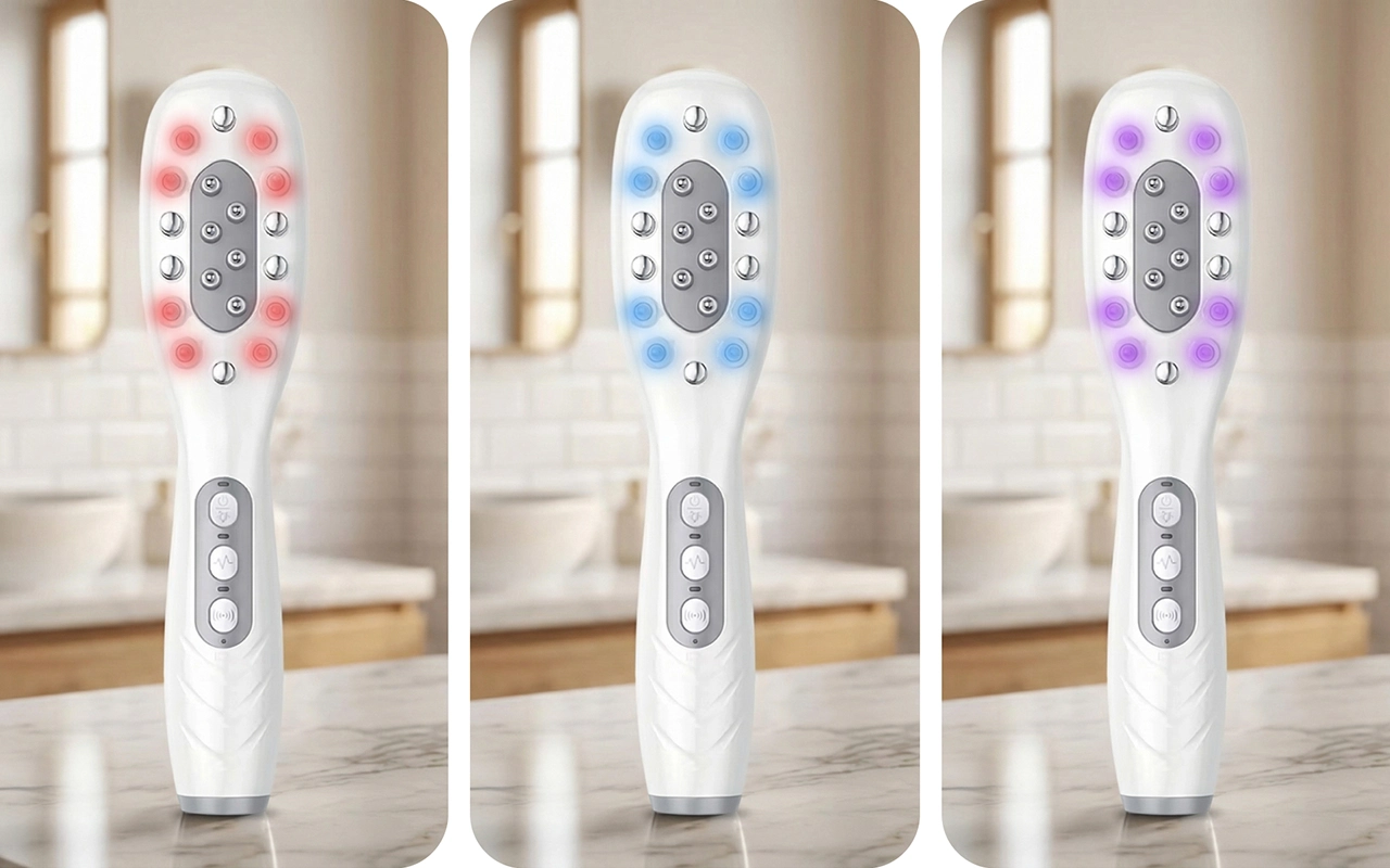 Červené, modré a fialové světlo cílí na různé potřeby pokožky hlavy. Tyto režimy pomáhají posilovat kořínky, léčit folikuly a rychle snižovat podráždění.