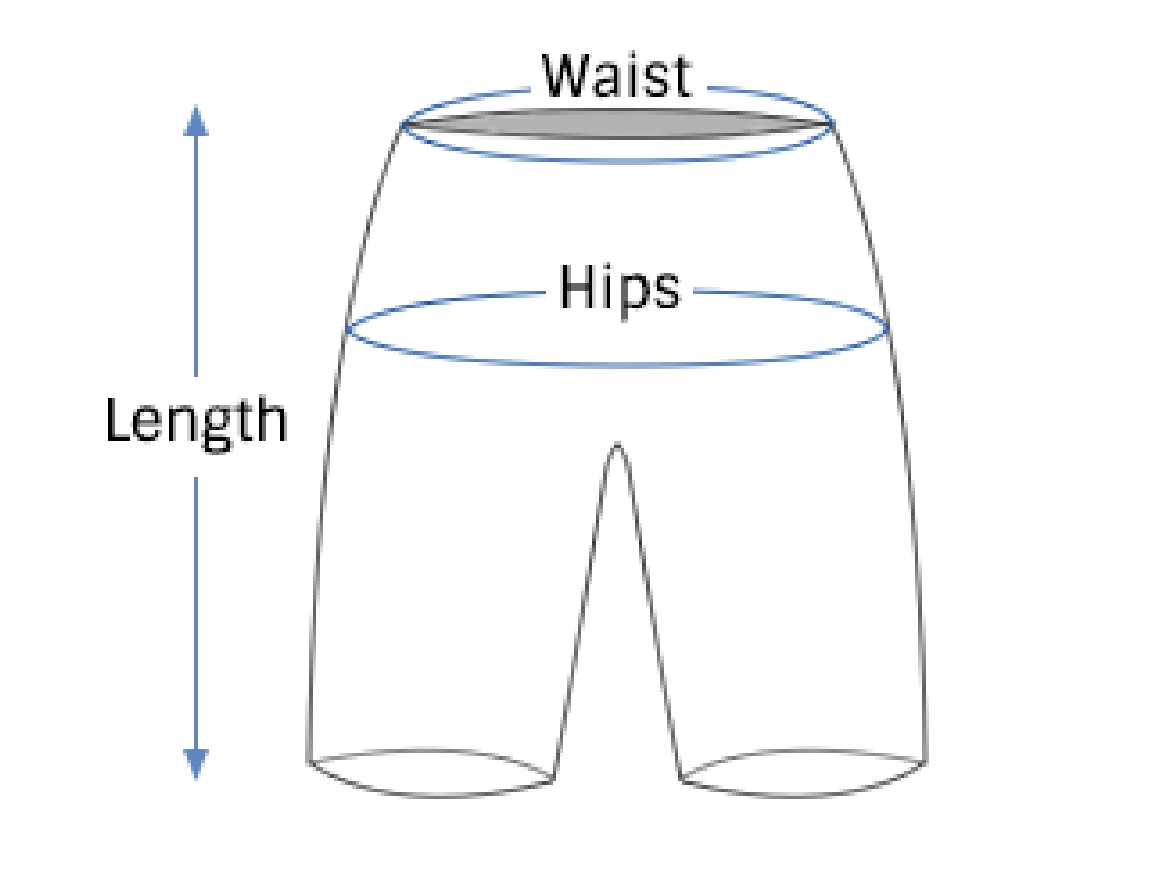 | SIZE | LENGTH | WAIST | HIPS | |||
