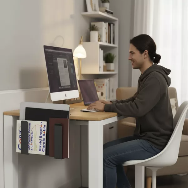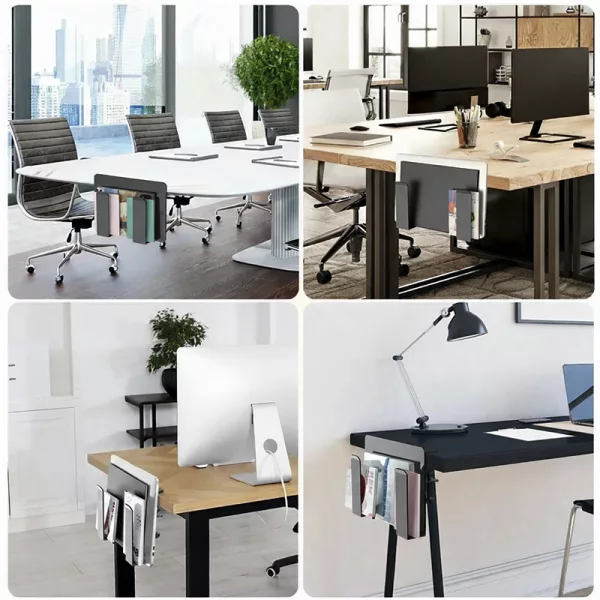 Rychle snižte nepořádek pomocí chytrého držáku vedle stolu. Užijte si více prostoru pro práci, psaní na klávesnici nebo psaní bez rušivých elementů.