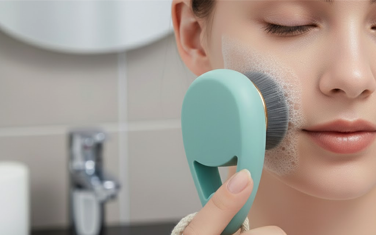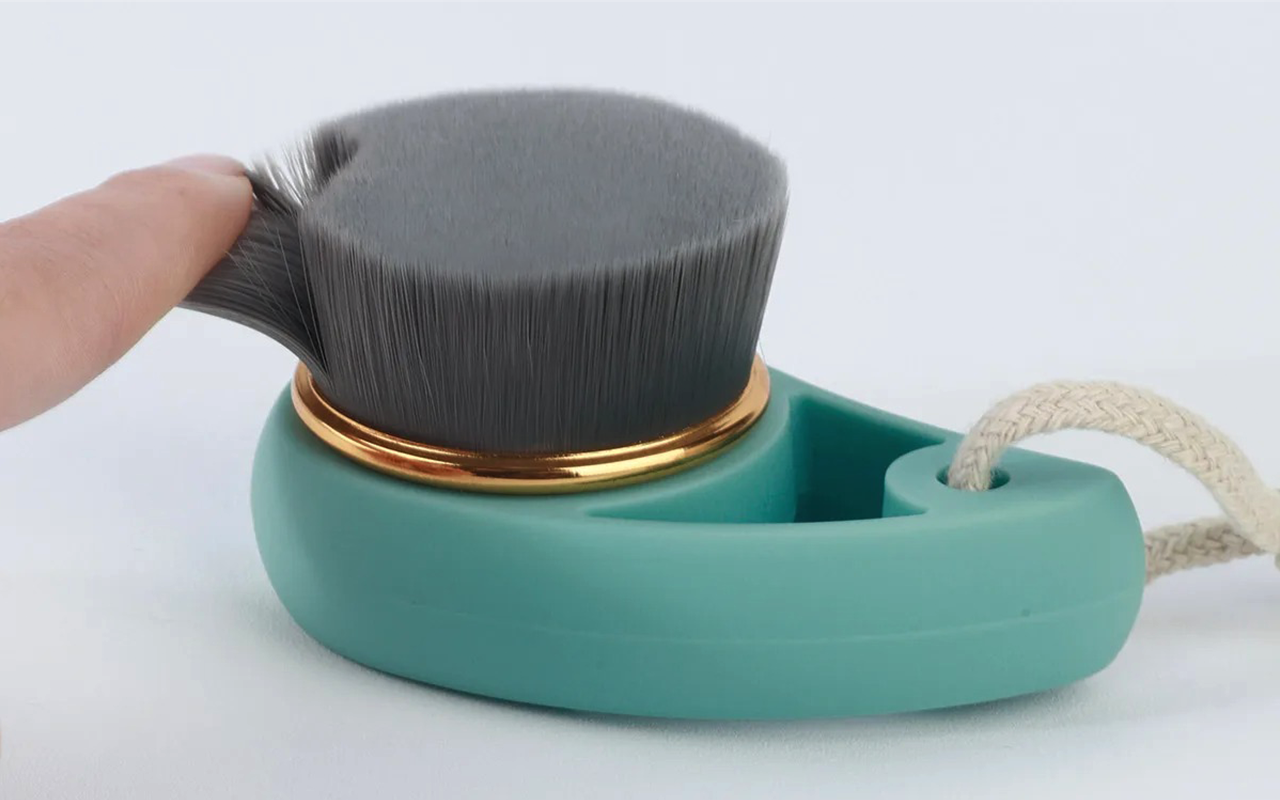 Jemný k mé pleti. Rukojeť kartáčku je pevná.