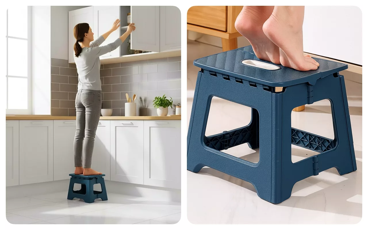 Texturovaný povrch pomáhá předcházet uklouznutí a udržuje nohy v bezpečí. Zůstaňte sebejistí při dosahování na vyšší místa bez obav.