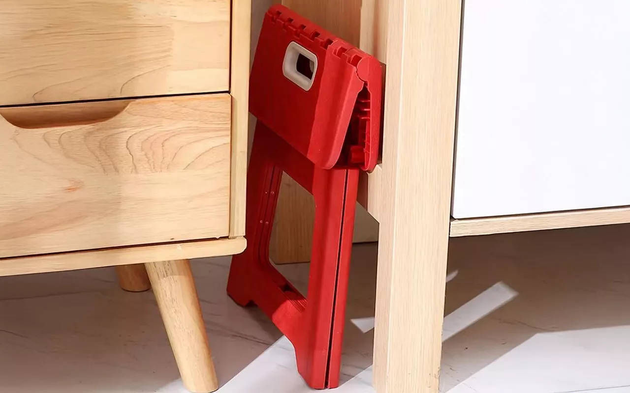 Stolička se snadno přenáší a rychle se rozkládá. Vždycky se na ní cítím stabilně, když sahám po věcech ve skříni.