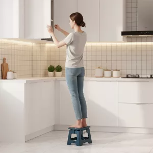 Používám tento stupínek každý den, abych dosáhl na věci na horních poličkách v kuchyni. Skládá se do malé velikosti a vejde se pod dřez, opravdu praktické.