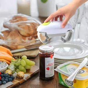 Funguje s mnoha tvary víček, včetně skleněných a kovových. Od zavařovacích sklenic po konzervované ovoce, vše snadno otevřete.