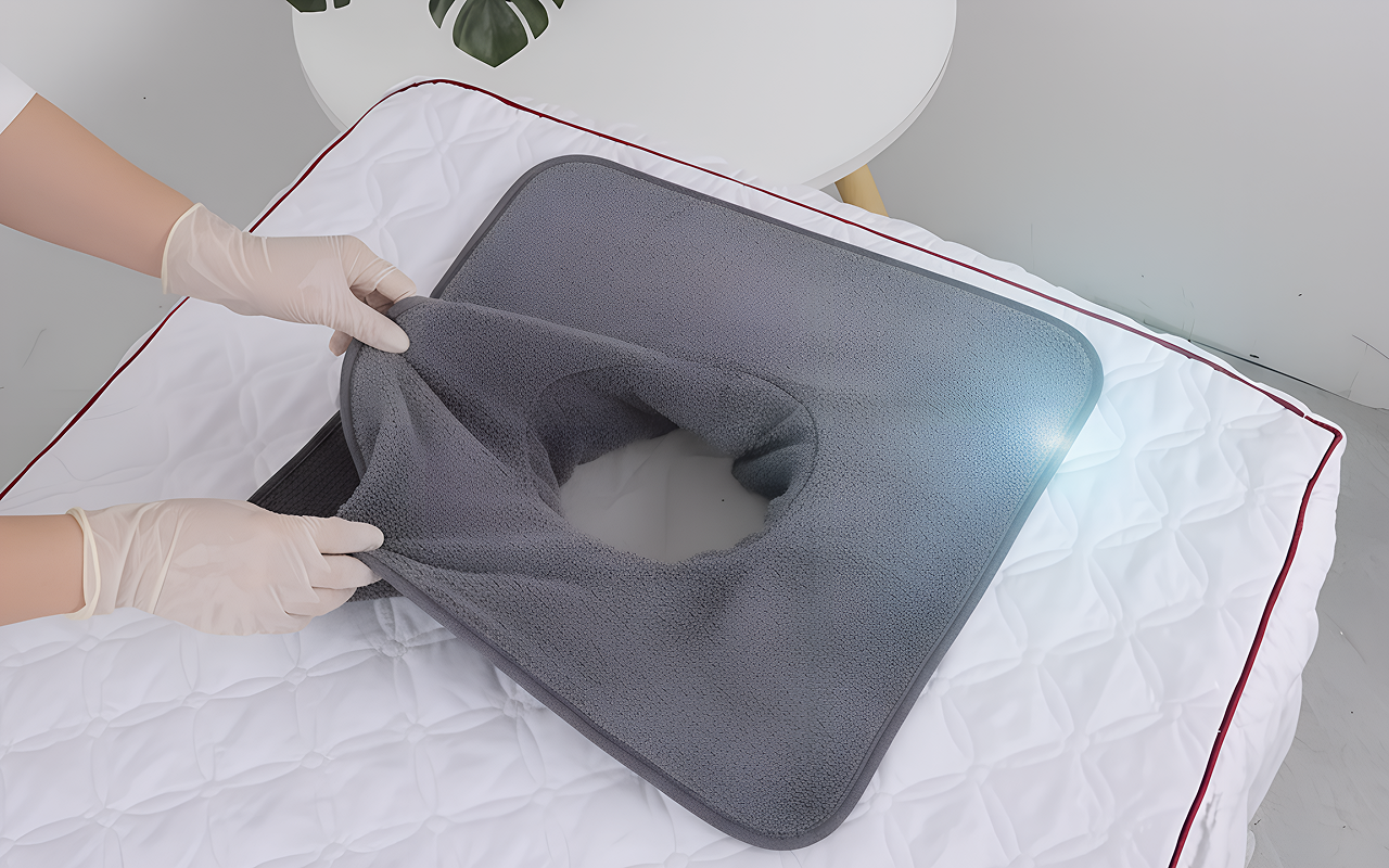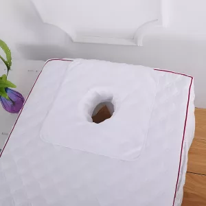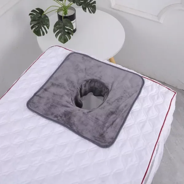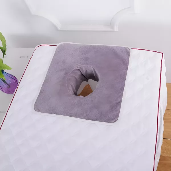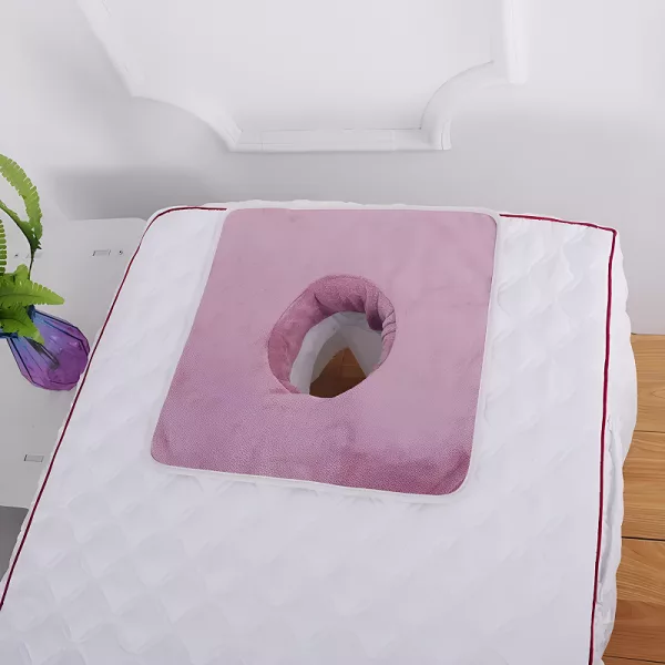 Tento ručník pro masážní sezení je opravdu hebký. Otvor na obličej má ideální tvar a při uložení klienta se neposouvá.