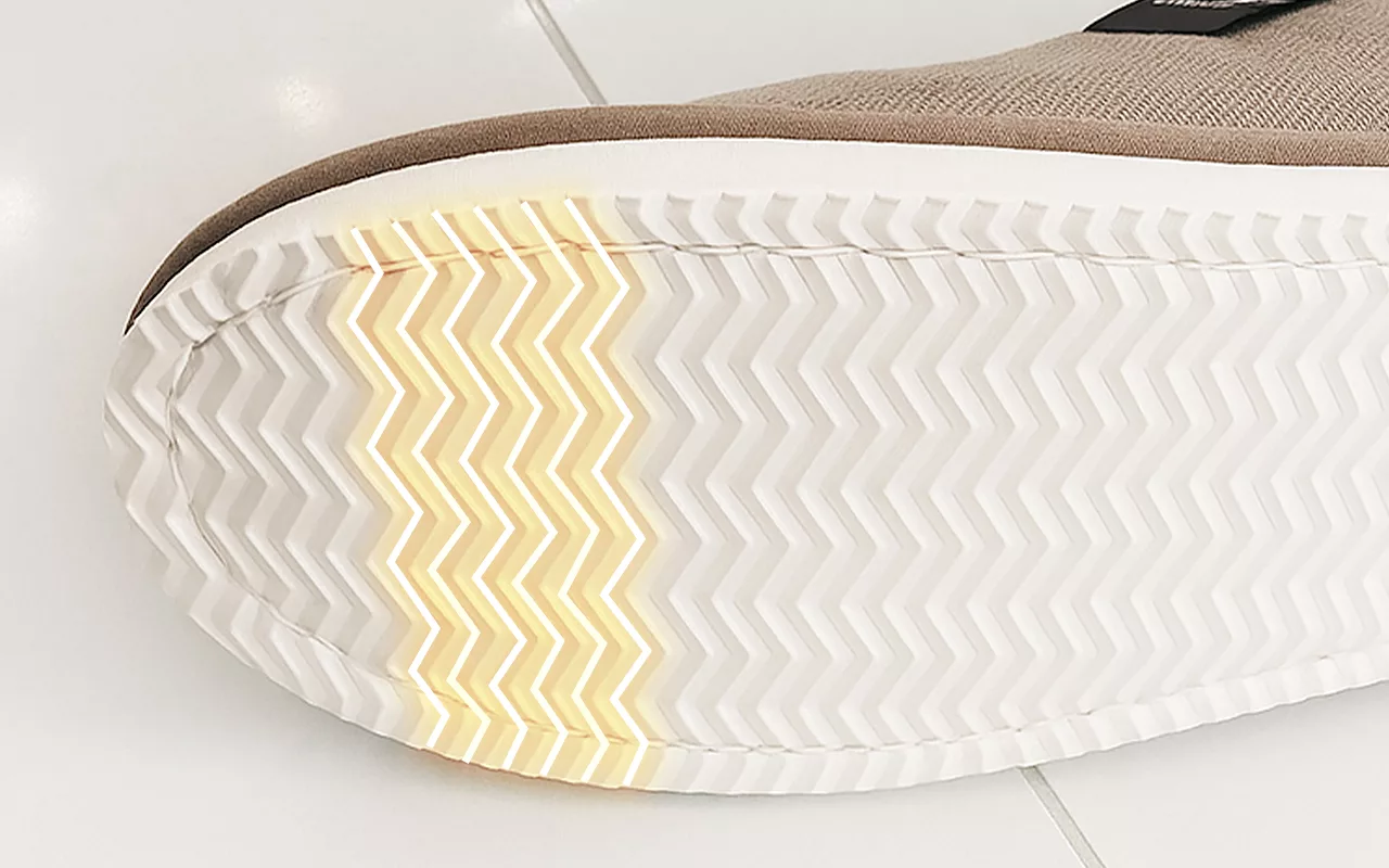 Protiskluzové podrážky zajišťují stabilitu na dřevě, dlažbě i koberci. Každý krok je bezpečný a pomáhá předcházet nečekaným pádům doma.