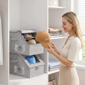 Stohovatelná konstrukce umožňuje vložit více věcí do úzkých skříněk. Využijte každou polici naplno a udržujte místnosti uklizené.