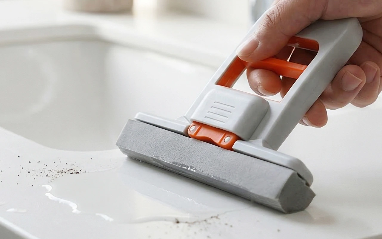Mám tenhle malý mop v šuplíku u dřezu a používám ho každý den. Bez problémů zvládá kuchyňské cákance, vylitou kávu a drobky kolem sporáku.