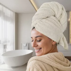 S ručníky mi vždy klouzaly z hlavy, ale s tímto už ne. Je snadný na použití a nezkazí mi vlasy. Skvělý na každodenní používání.