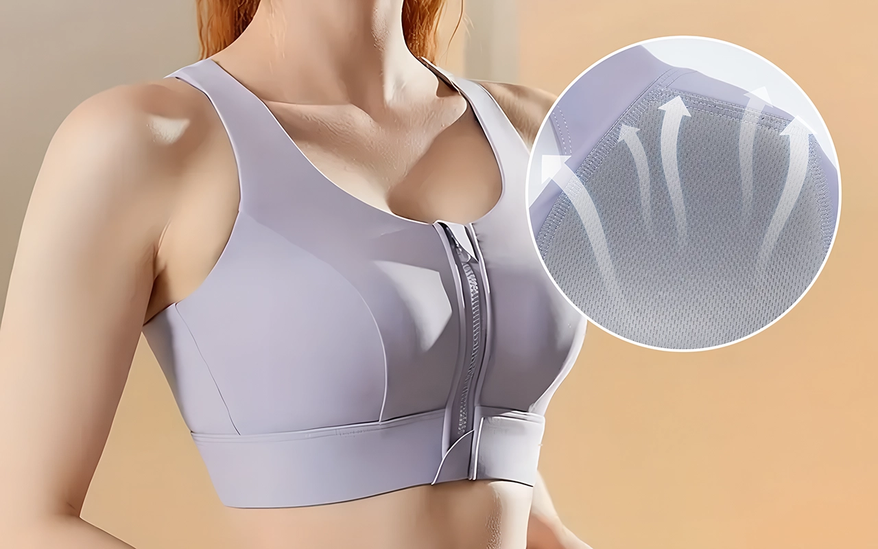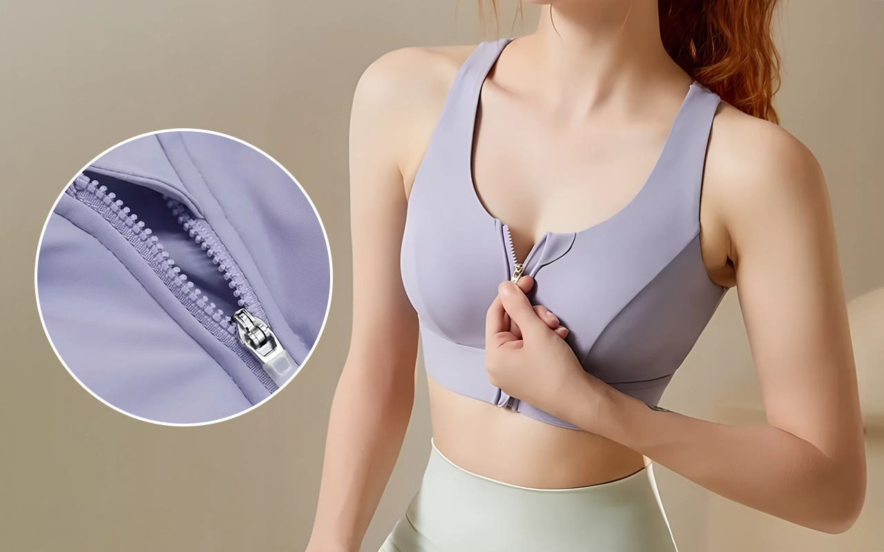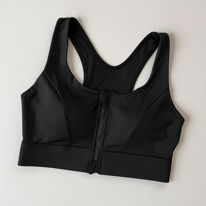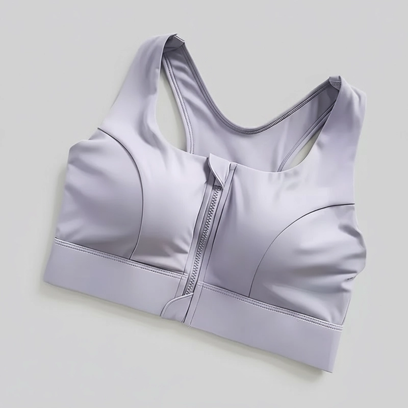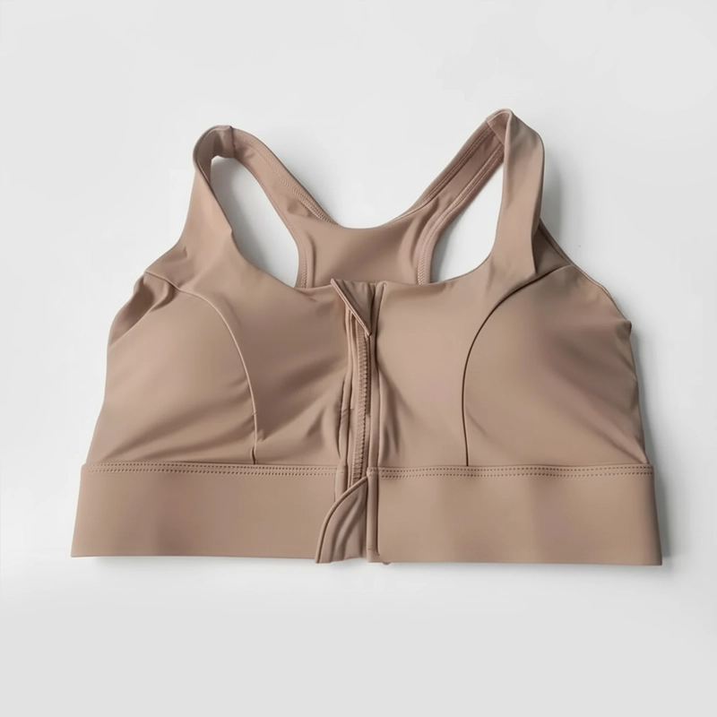 Přední zip usnadňuje převlékání před a po józe. Podpora drží vše na místě i při skákání během kardio.