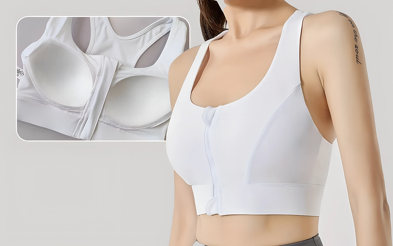 Přední zapínání usnadňuje přípravu a snižuje stres. Ušetřete čas před každým tréninkem a vyhněte se nepříjemným komplikacím.