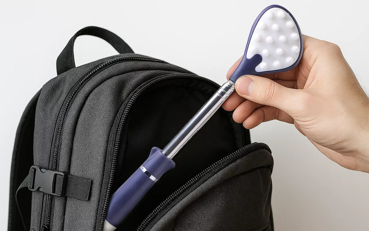 Už nikdy se nebudete obtížně natahovat nebo cítit nepohodlí. Tento chytrý nástroj se snadno vejde do tašky nebo zásuvky stolu. Zůstaňte v pohodlí a uvolněte se v práci nebo při odpočinku doma. Chytré provedení znamená, že na každý bod snadno dosáhnete.