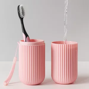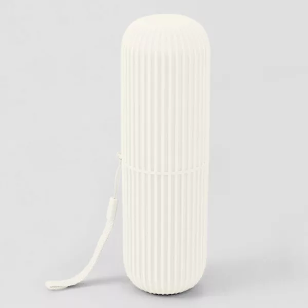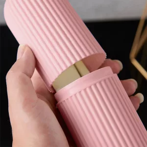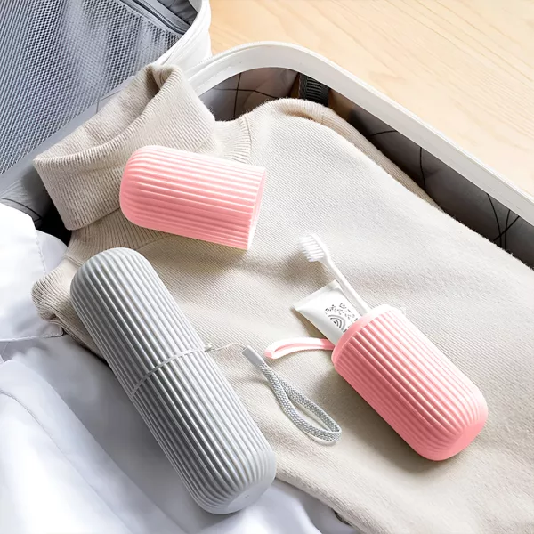Perfektně se vejde do příručního zavazadla. Materiál je pevný, takže nikdy nezmáčkne kartáček, a kelímek mi fakt vyhovuje!