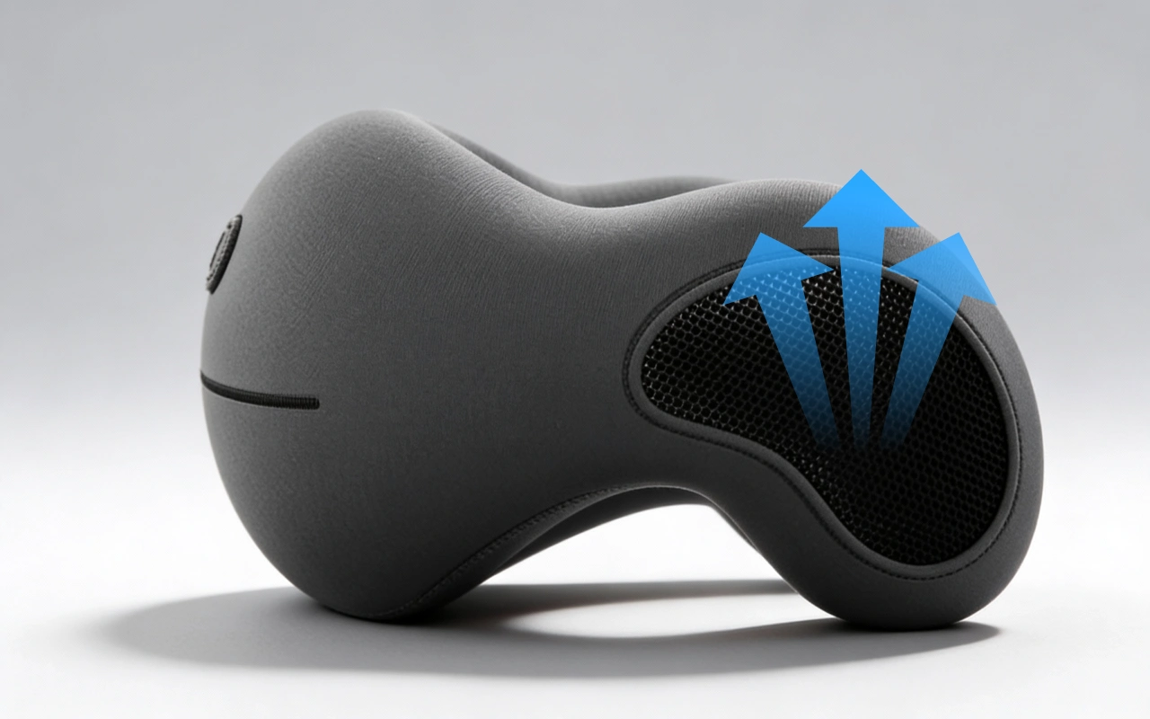 Miluje, jak se tento polštář jemně omotá kolem mého krku. Už žádné ztuhlé svaly po spaní vsedě. Prodyšnost navíc udržuje chlad.