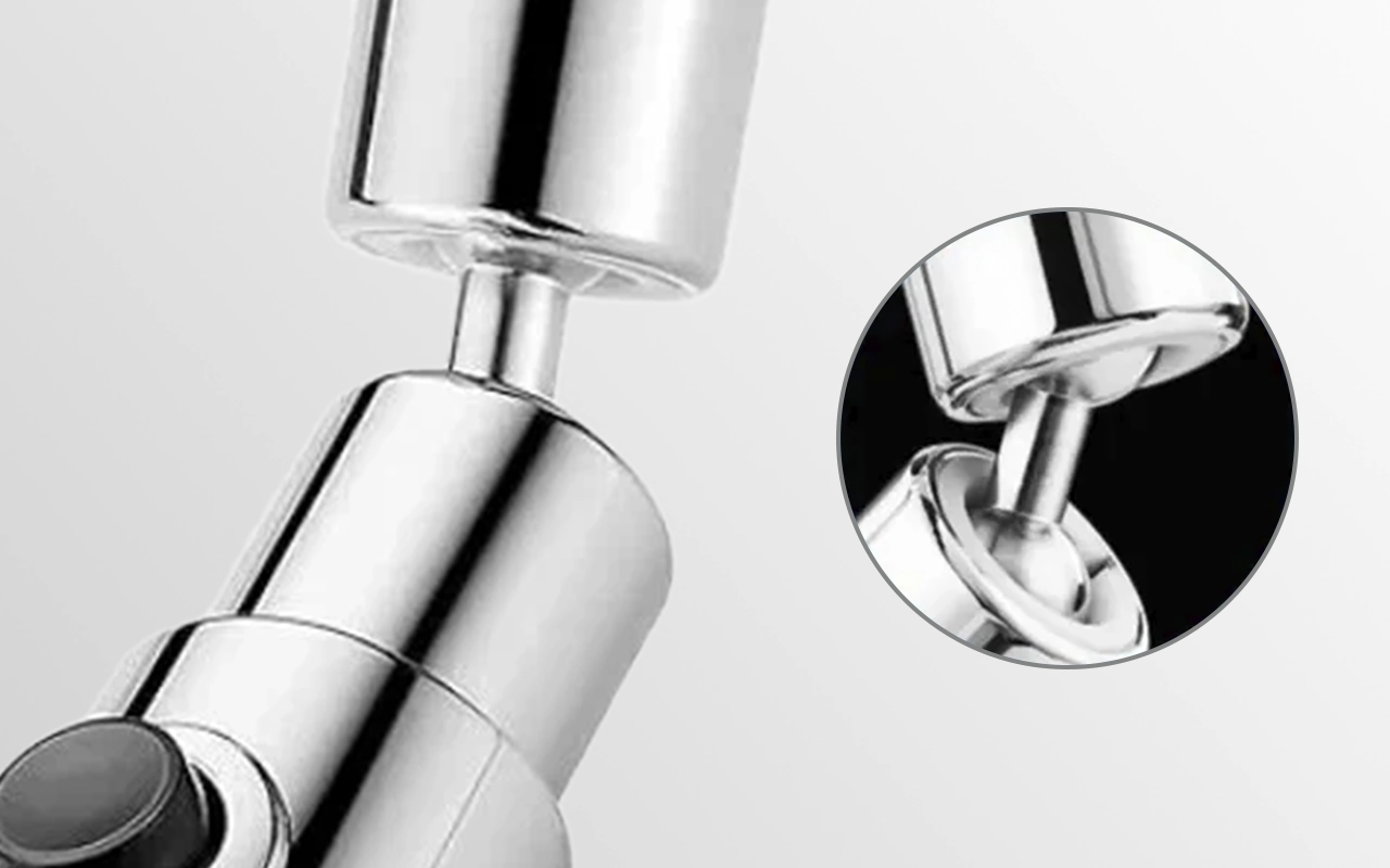 Dvojité otočné klouby umožňují rychle nasměrovat vodu kamkoliv. Neunikne žádné místo, ani kolem těžko přístupných rohů nebo hlubokých hrnců.