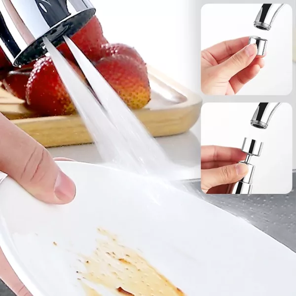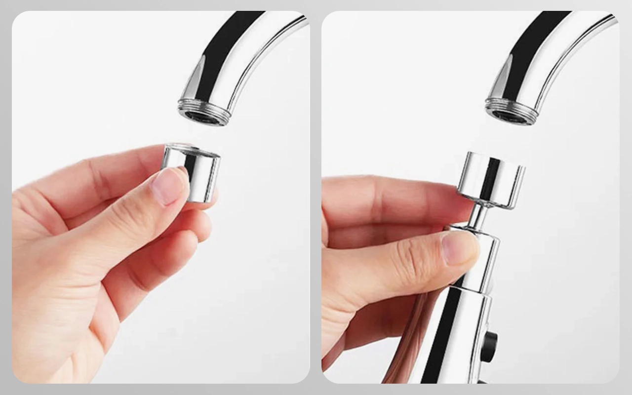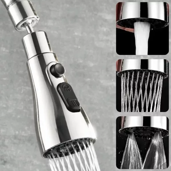 Nástavec perfektně pasuje na náš starý kohoutek. Různá nastavení rozprašovače mi umožní rychle opláchnout těžké pánve nebo přepnout na jemné ovoce.