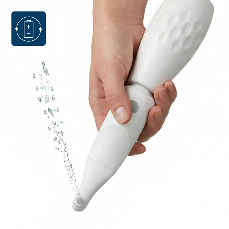 Stačí stisknout tlačítko a vybrat jemný nebo silný proud. Čištění je rychlé a pohodlné bez nepořádku a starostí.