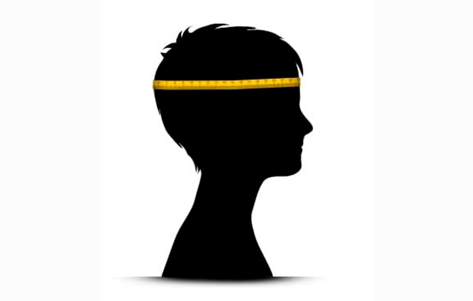 - 1. Omotejte měřicí pásku kolem nejširší části hlavy, těsně nad obočím a ušima.