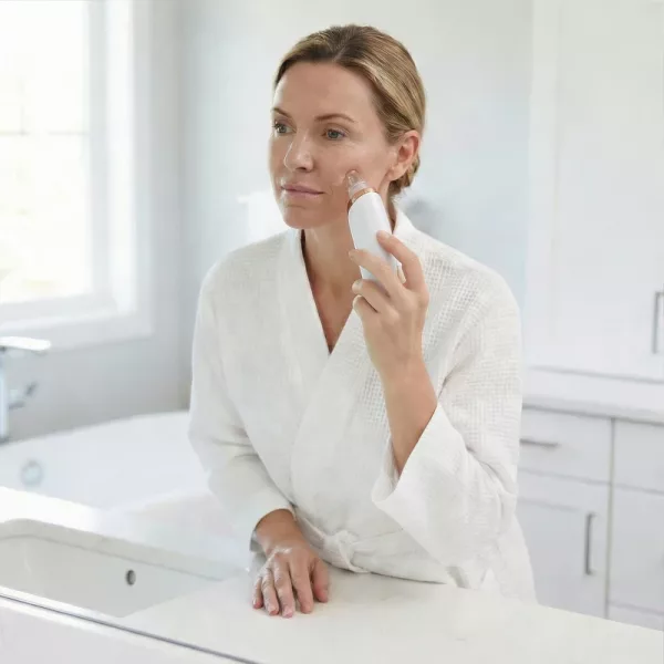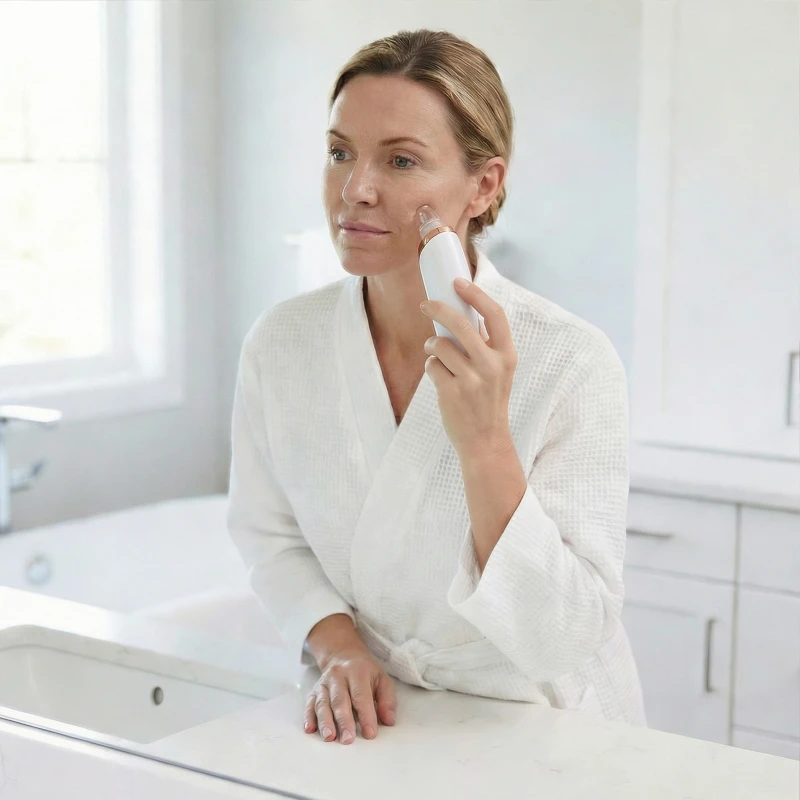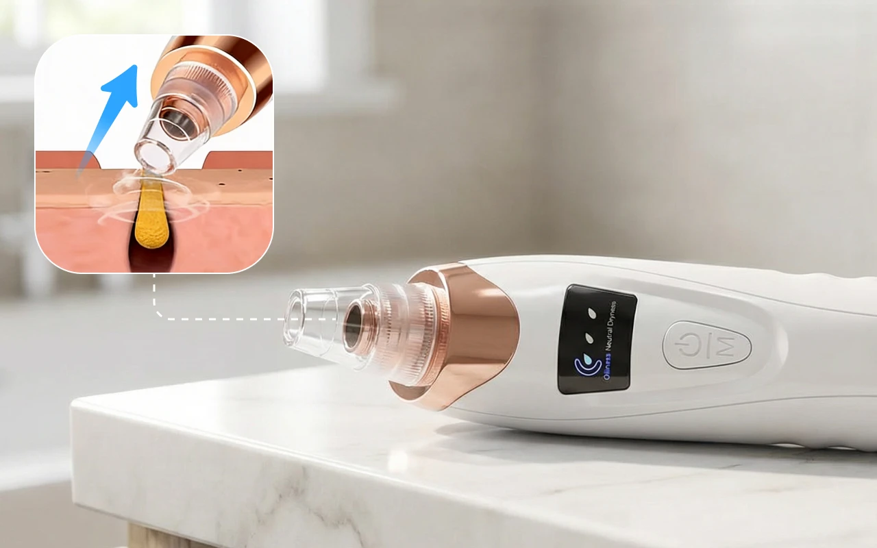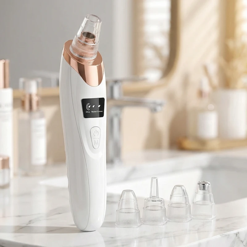 Toto malé sací zařízení je tak snadné na použití. Líbí se mi, že si můžu zvolit sílu podle části obličeje, kterou čistím. Bez bolesti, jen čistší pleť.