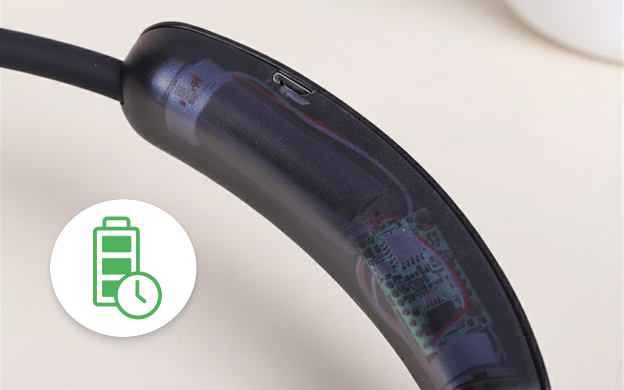 Dlouhá výdrž baterie znamená, že ji nemusím pořád nabíjet. Je super pohodlná i na několik hodin.