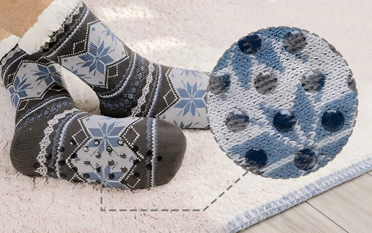 Silikonové tečky zabrání nechtěnému uklouznutí na hladkém povrchu. Pohybujte se sebejistě po dřevěné či dlaždicové podlaze doma.