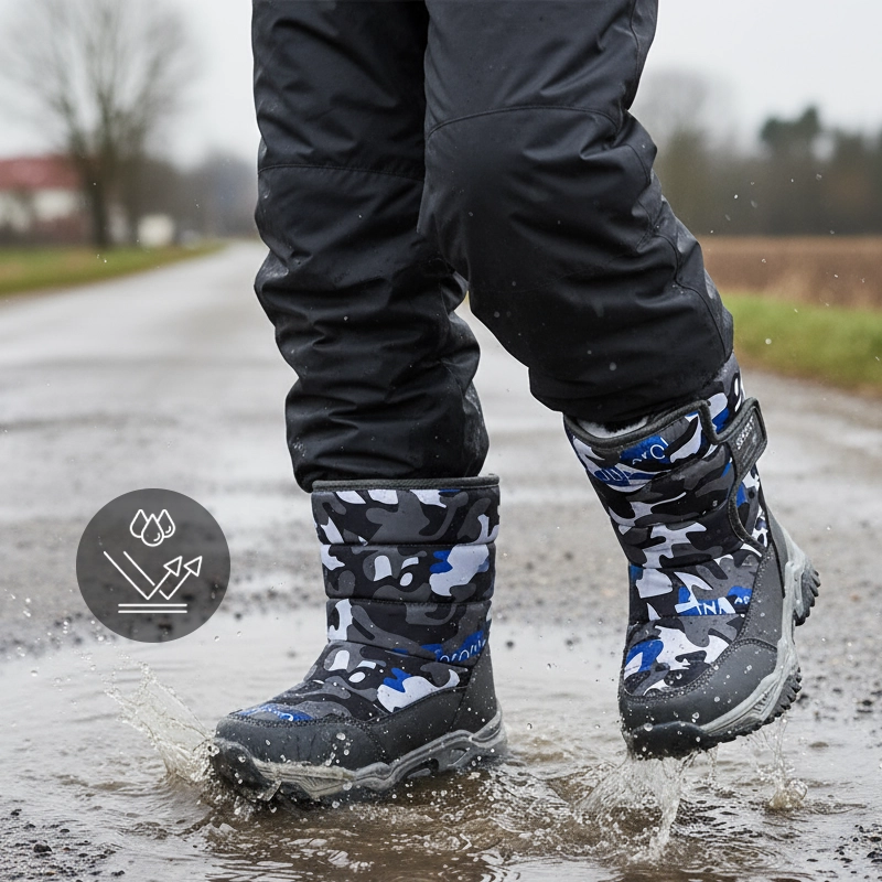 Voda zůstává venku, ponožky zůstávají po celý den úplně suché. Děti mohou skákat do kaluží nebo sněhu bez obav.