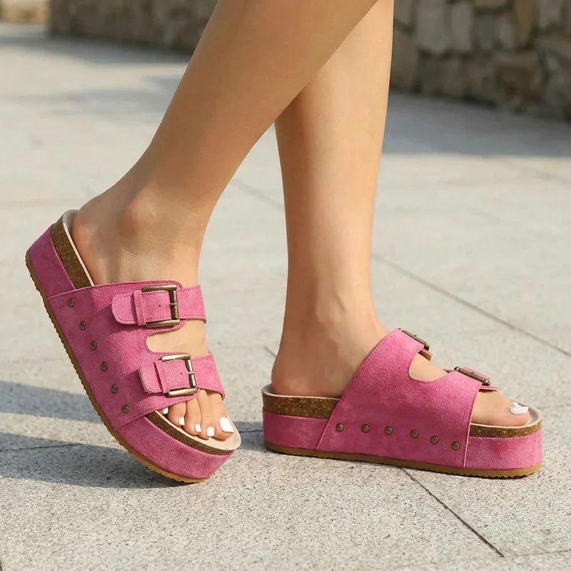 Dámské stylové sandály s tlustou podrážkou a nastavitelnými pásky – pohodlné platformové letní pantofle