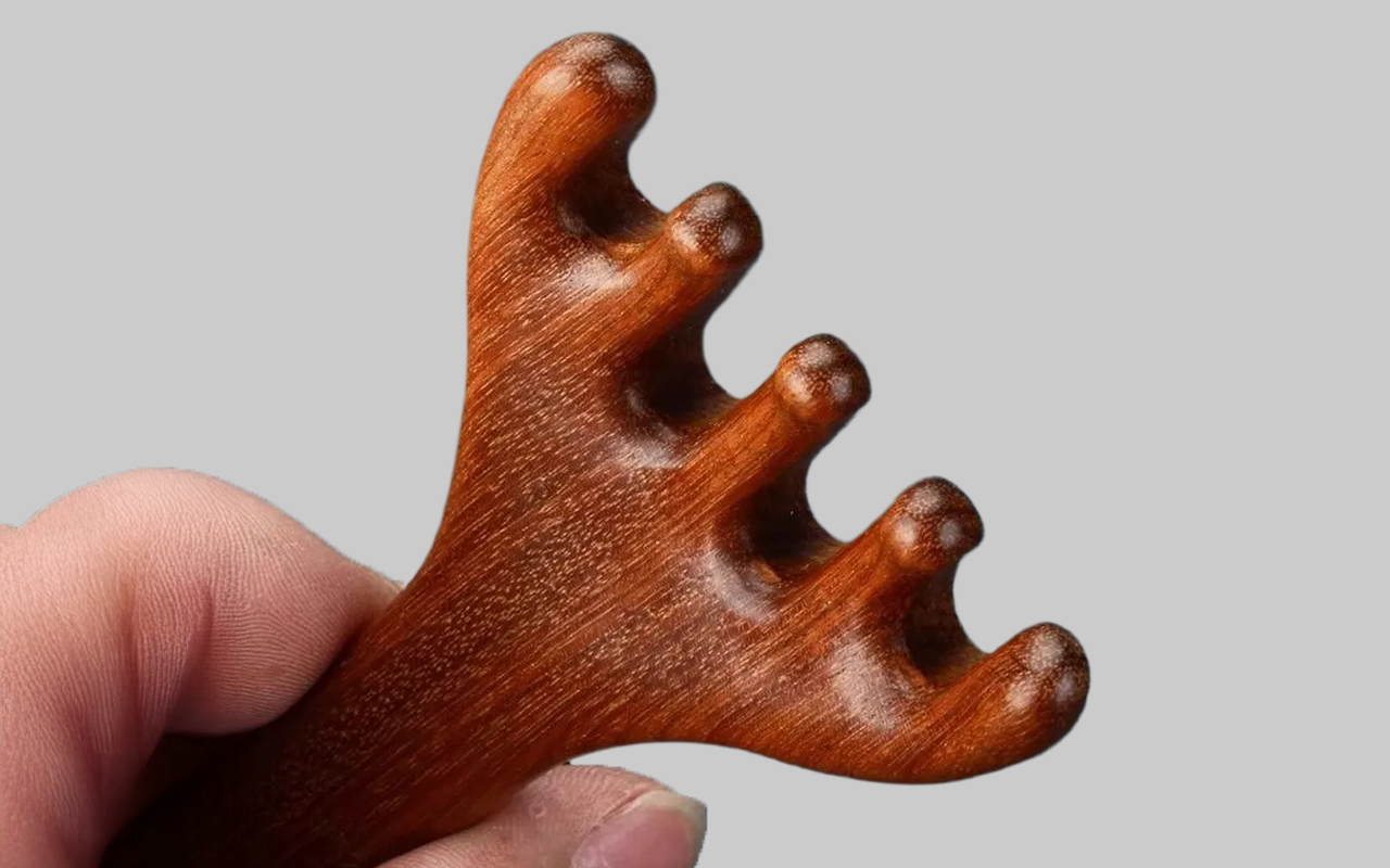 Používám ho po sportu na zklidnění. Zuby jsou zaoblené a jemné a velmi oceňuji, že je vyrobený ze dřeva, ne z plastu.