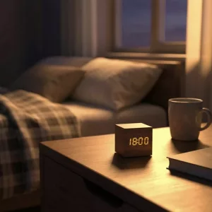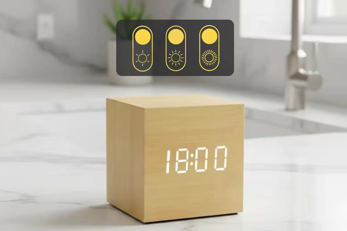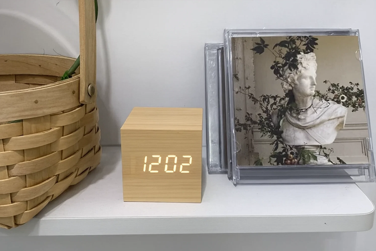Opravdu se mi líbí jemný displej – čas přečtu i po tmě, aniž by mě bolely oči. Dřevěný vzhled dělá můj pokoj útulnější.