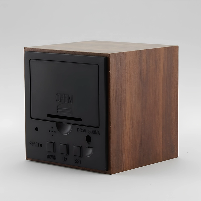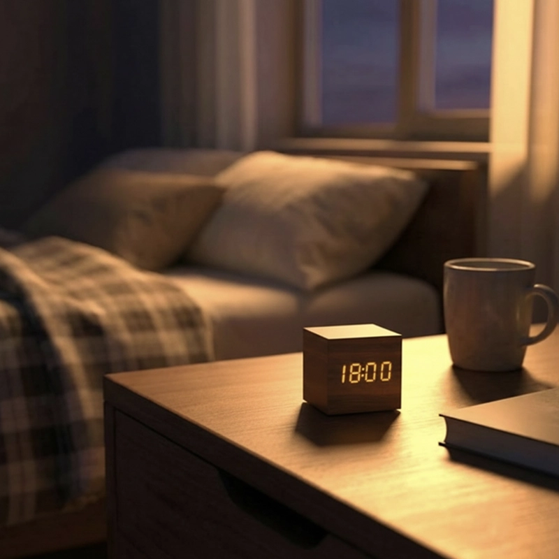 Už nepotřebuji telefon na budíky. Dřevěná kostka je spolehlivá a udržuje můj prostor uklizený. Nastavení je opravdu jednoduché.